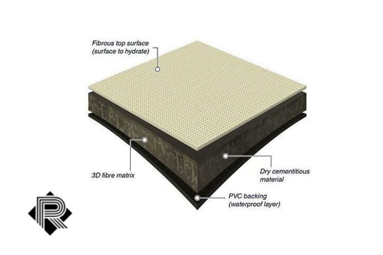 - لایه ژئوممبران: این لایه مقاوم، ضدآب و کشسان، به پارچه حاوی سیمان و مواد پرکننده متصل میشود و از ریزش مواد جلوگیری میکند. همچنین، لایه ژئوممبران، بتن پارچهای را در زمان عملآوری به عایق رطوبتی تبدیل کرده و مانع از خروج آب مورد نیاز سیمان در فرآیند هیدراتاسیون میشود.